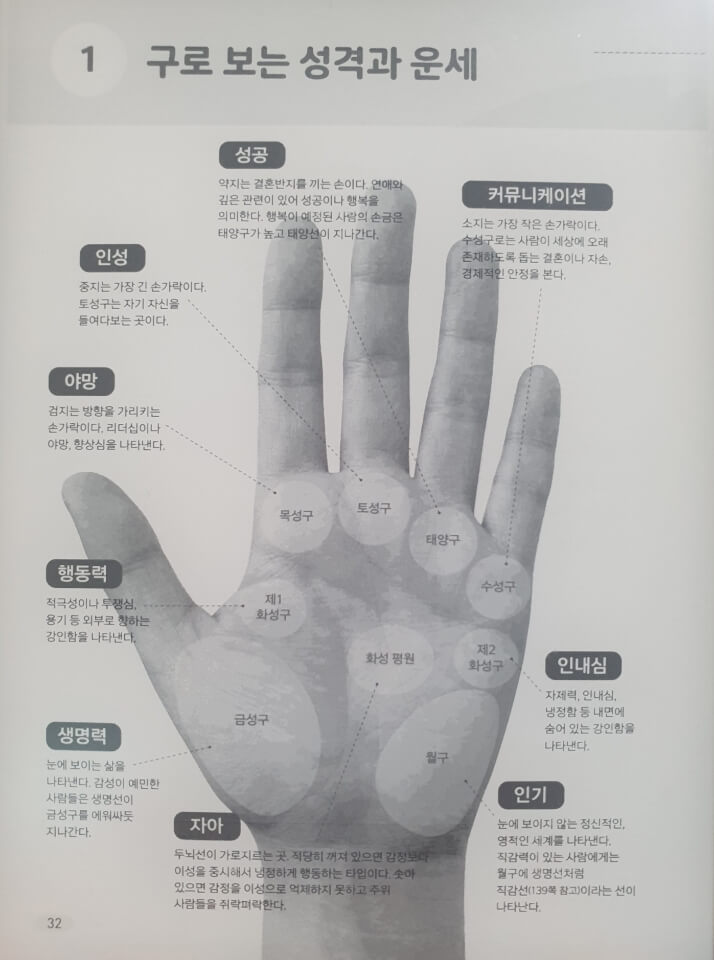 이상으로 책 '혼자 하는 손금 공부'의 내용 중 구로 보는 손금 운세에 대해서 살펴보았습니다. 손금은 노력하면 좋게 바꿀 수 있으니 내용 참고하셔서 규칙적으로 생활해 보시면 좋겠습니다. 감사합니다.