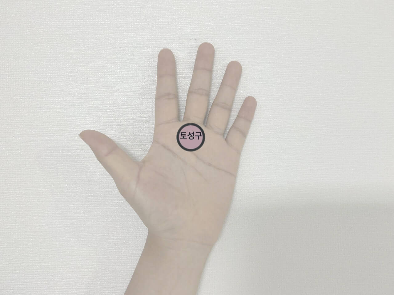 토성구가 적당히 두툼하면 사려가 깊습니다. 토성구는 구 중에서 비교적 높지 않은데, 적당히 두툼하면 사려가 깊고 자기 객관화가 잘되는 사람이라는 뜻입니다. 타인을 끌어들이지 않고 자신의 일은 혼자서 해결하려고 합니다. 인내심이 있고 성실한 타입입니다. 다만, 토성구 한가운데가 높이 올라와 있다면 무언가를 생각할 때 심각해지기 쉽고, 신경과민이 되며 남들과 비교만 하는 타입일 수 있습니다.